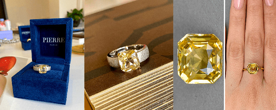 На цвет жёлтых сапфиров могут оказывать влияние и другие цвета внутри того же драгоценного камня. Такие сапфиры могут варьировать от зеленовато-жёлтого цвета светлой и тёмной насыщенности до оранжево-жёлтого цвета слабой и интенсивной насыщенности. Непревзойденный жёлтый сапфир имеет цветовую гамму от жёлтого до оранжево-жёлтого с яркой насыщенностью. Оранжевые сапфиры варьируют от желтовато-оранжевого до красновато-оранжевого оттенков.