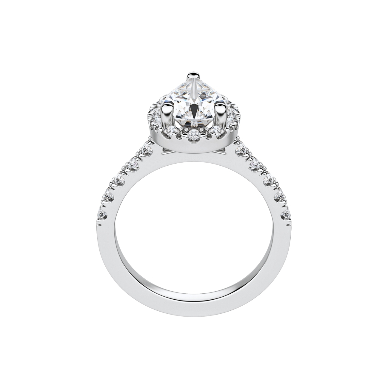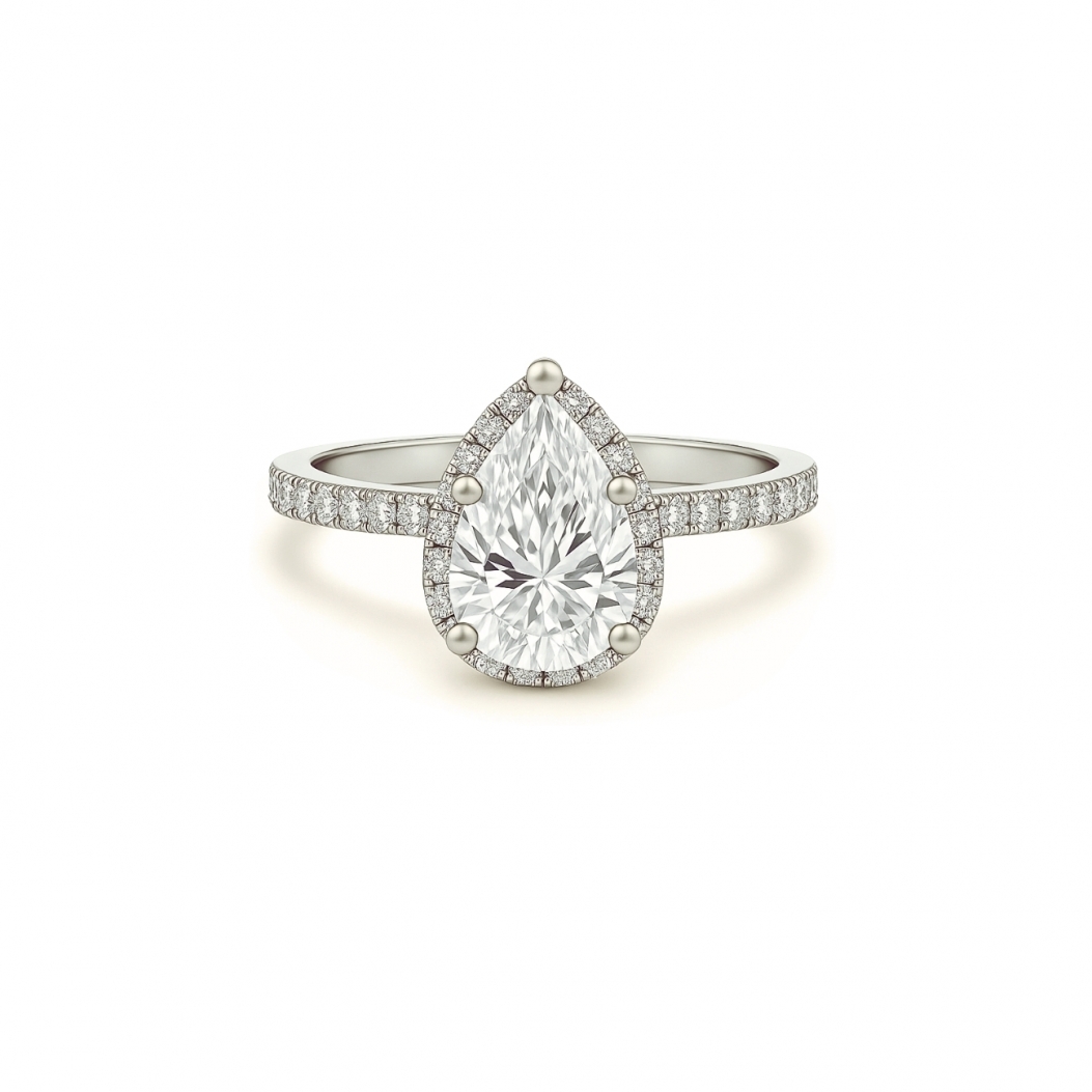 Кольцо с бриллиантом Груша в ореоле