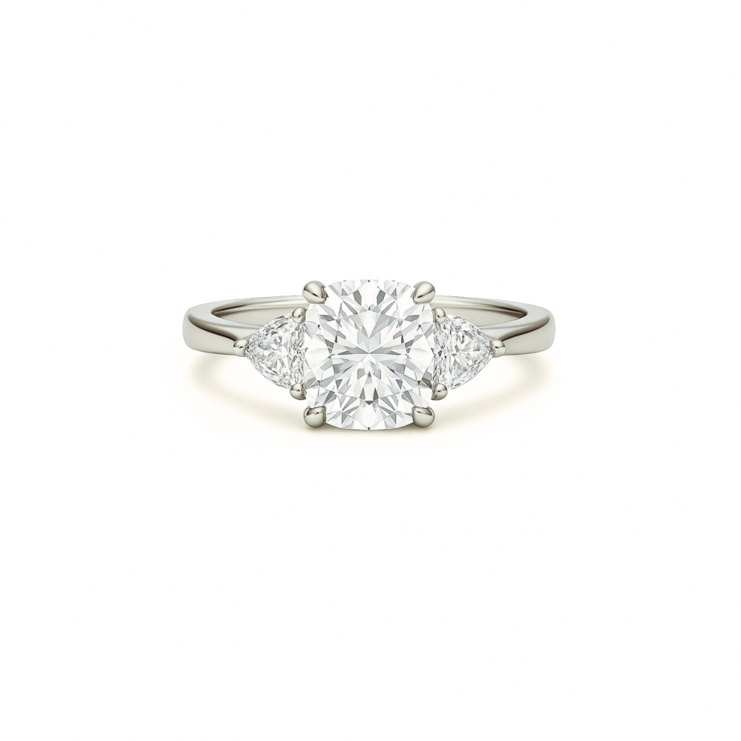 Кольцо трилогия с бриллиантом Кушон изображение 1