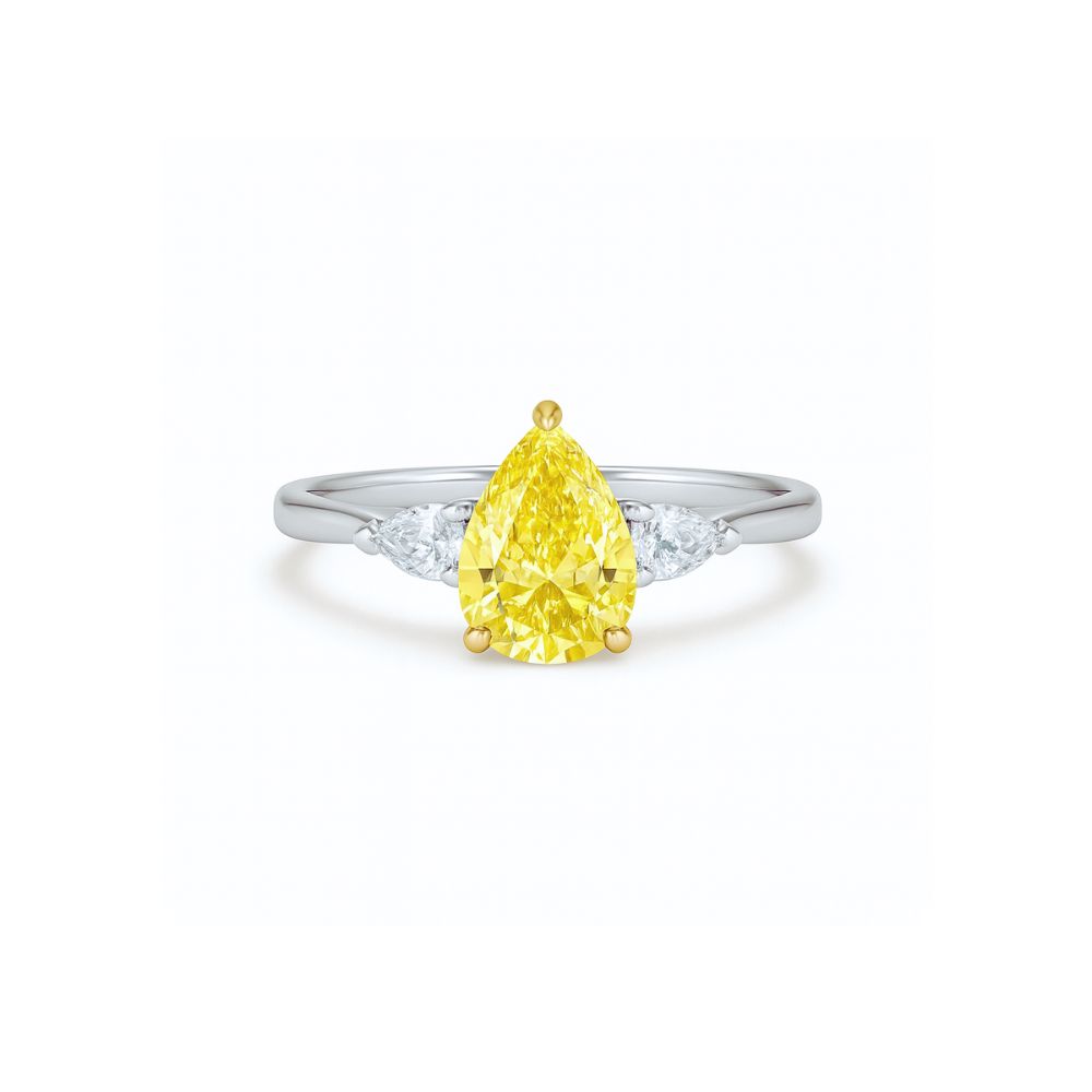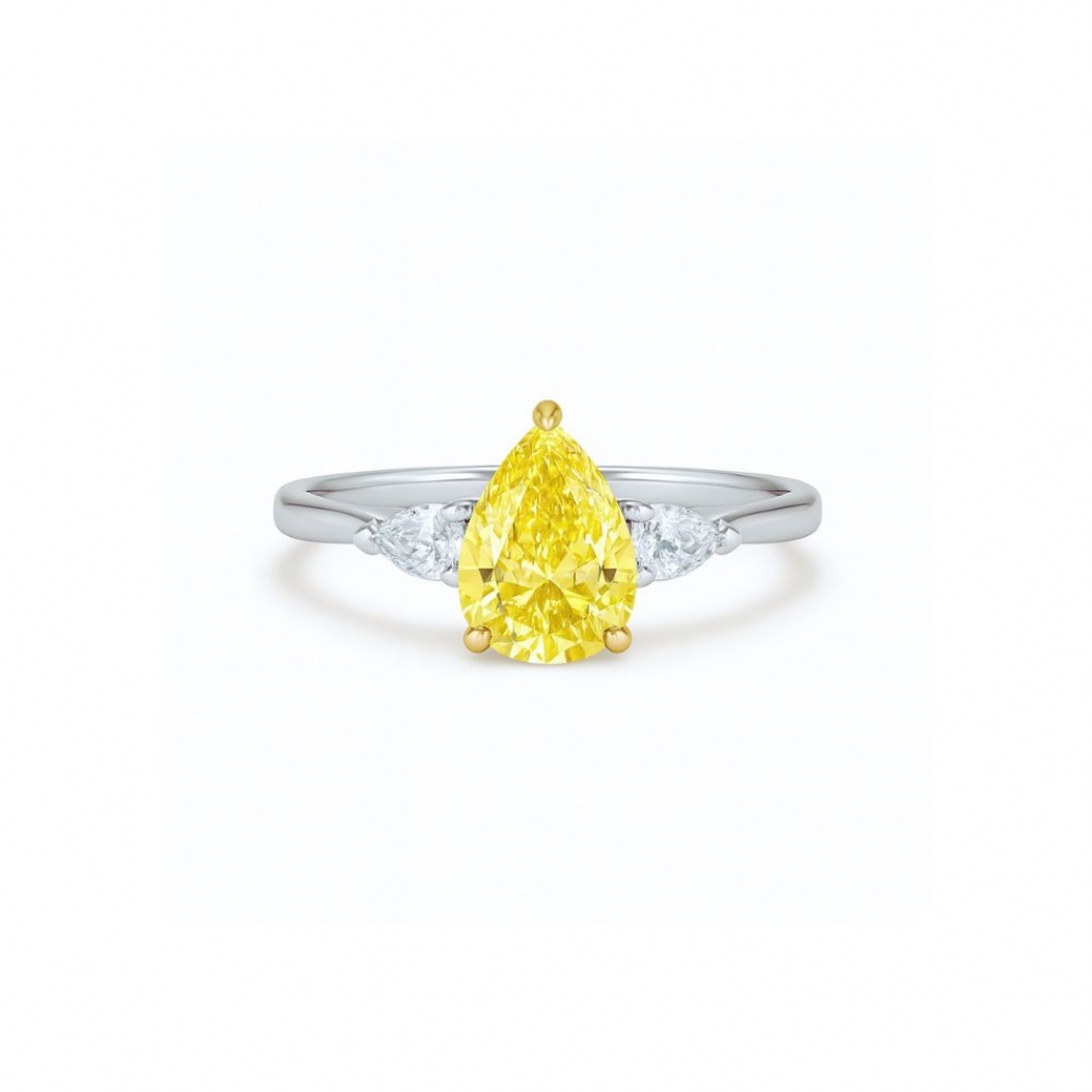 Кольцо трилогия с желтым бриллиантом Груша изображение 1