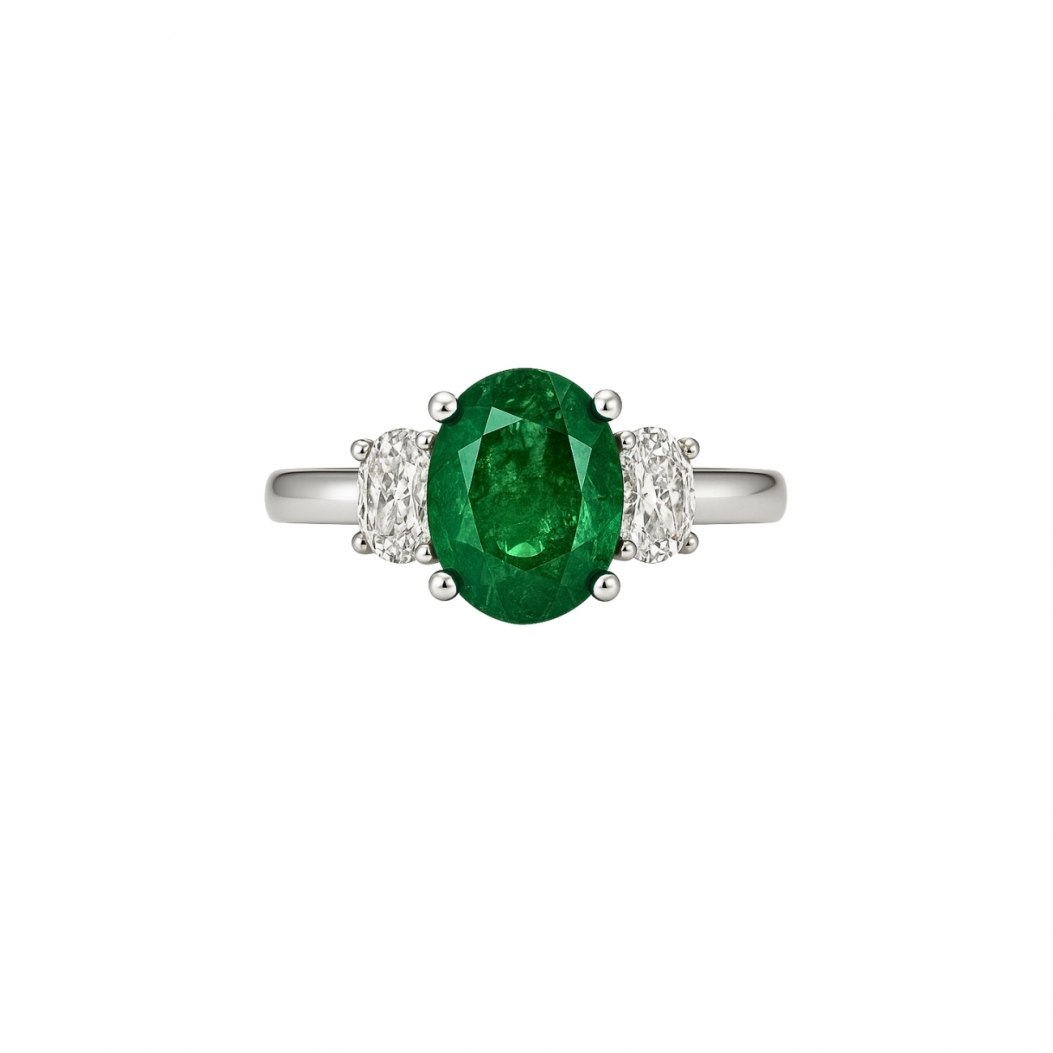 • Чистота: изумруд — умеренное масло (F2); бриллиант — VS — в бриллиантах есть небольшие включения, которые заметны только в лупу с 10x увеличением, без лупы бриллианты визуально чистые