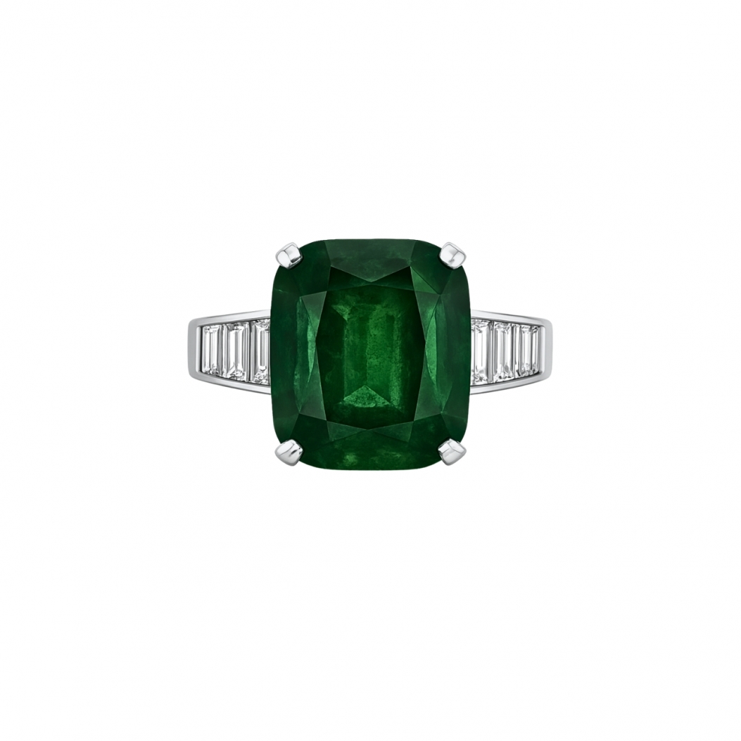 • Чистота: изумруд — умеренное масло (F2); бриллиант — VS — в бриллиантах есть небольшие включения, которые заметны только в лупу с 10x увеличением, без лупы бриллианты визуально чистые